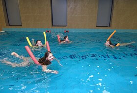 Dynamické rehabilitační cvičení v bazénu s hudbou. Zvolte si v rozvrhu lekci pro dospívající dívky nebo pro dospělé ženy.